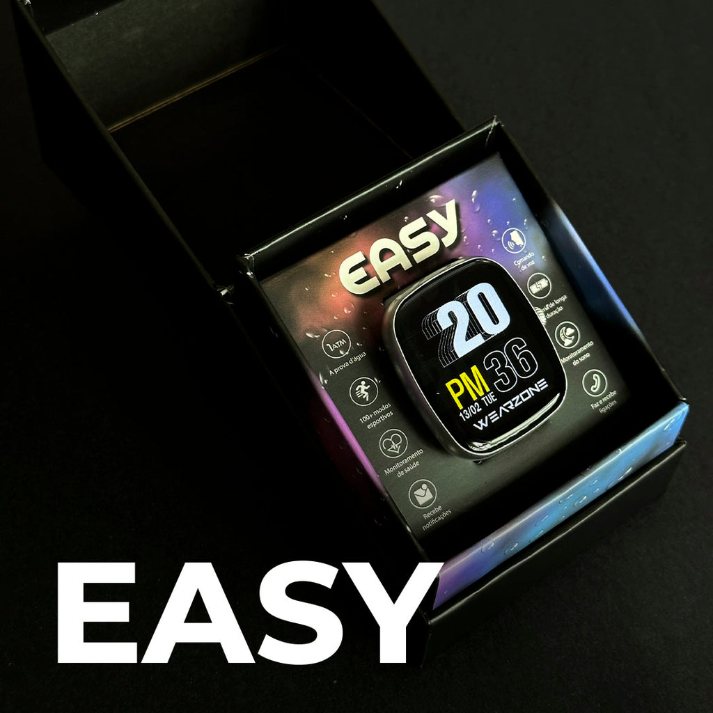 O EASY é um smartwatch projetado para facilitar sua vida diária, oferecendo funcionalidades práticas e durabilidade incomparável. EASY foi pensado e projetado para ser seu companheiro diário sendo ele aprova d’água 1ATM, designer inovador e exclusivo, sem contar com a bateria de longa duração feita para durar até 7 dias para acompanhar o seu ritmo.