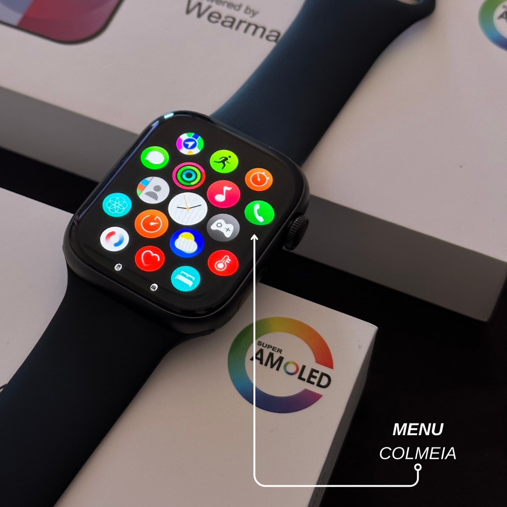 Atualmente o modelo W99+ é um dos modelos tradicionais (sem ser ultra) que mais se assemelham ao Apple Watch Série 9, desde o tamanho, cores, até qualidade de tela. O Smartwatch ideal até mesmo para o público mais exigente.